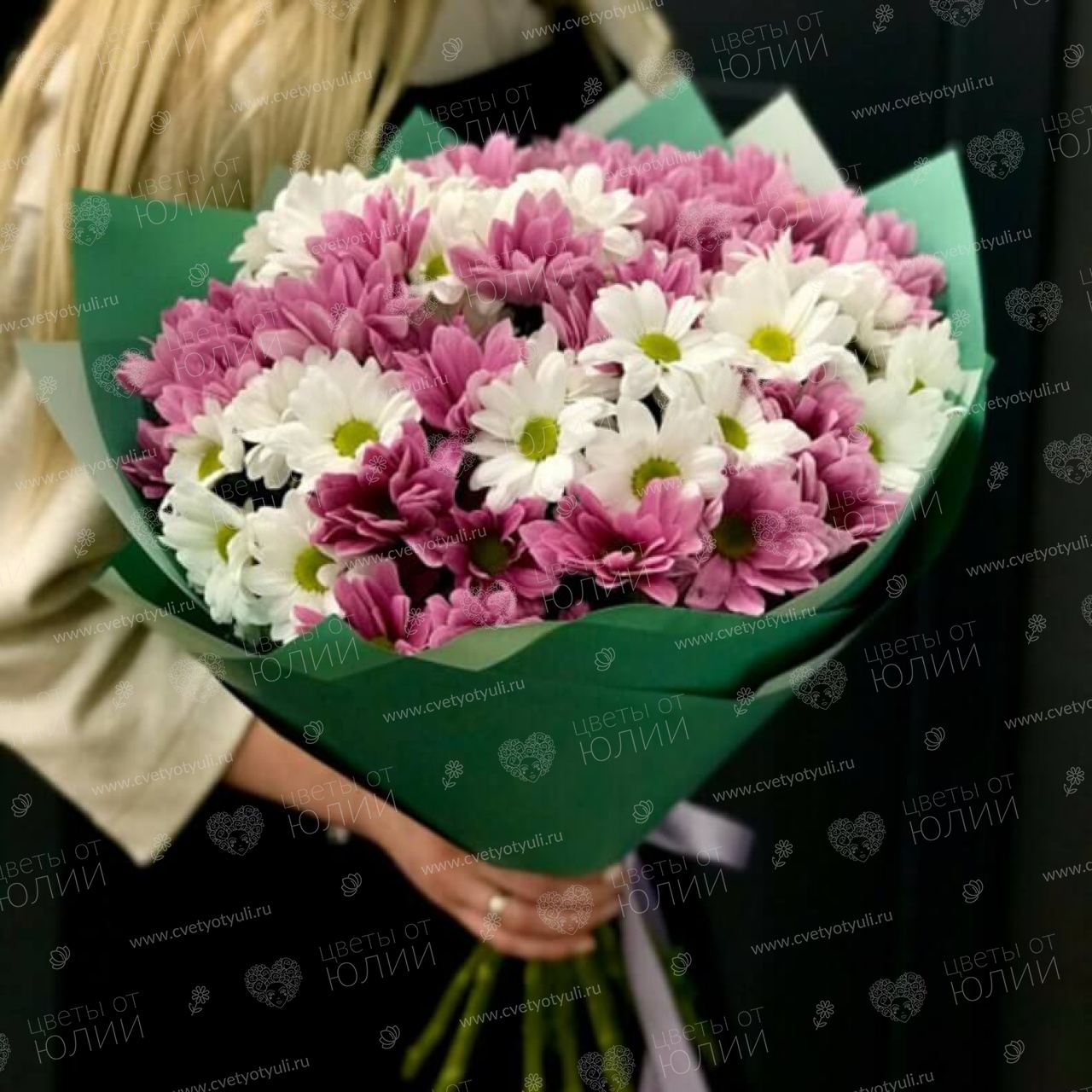 Хризантема кустовая - 11 шт, упаковка, лента.