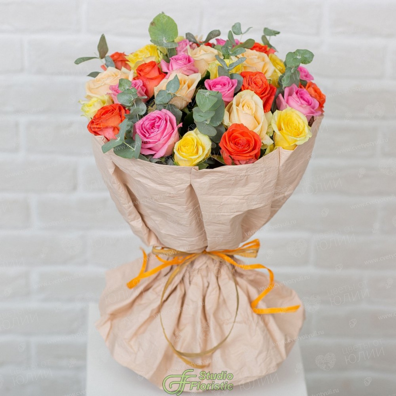 Роза 40 см - 15 шт, эвалипт, упаковка, лента.