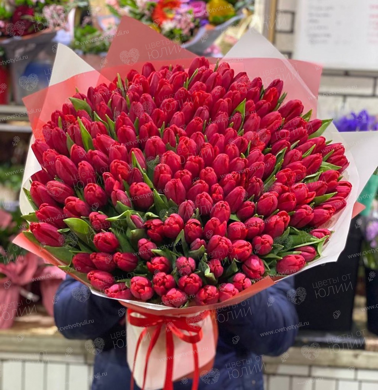 Букет из 101 красного тюльпана
