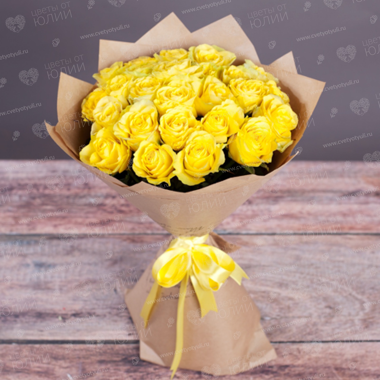 Букет из 25 желтых роз 40 см