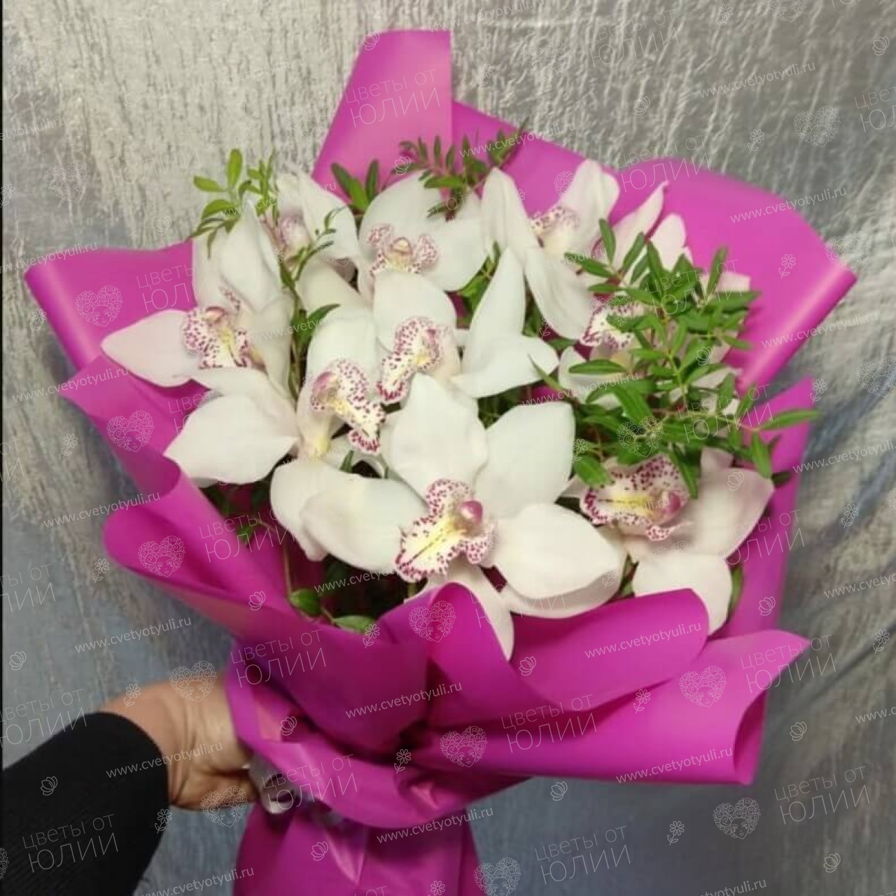 Орхидея - 7 шт, писташ - 2, упаковка, лента.
