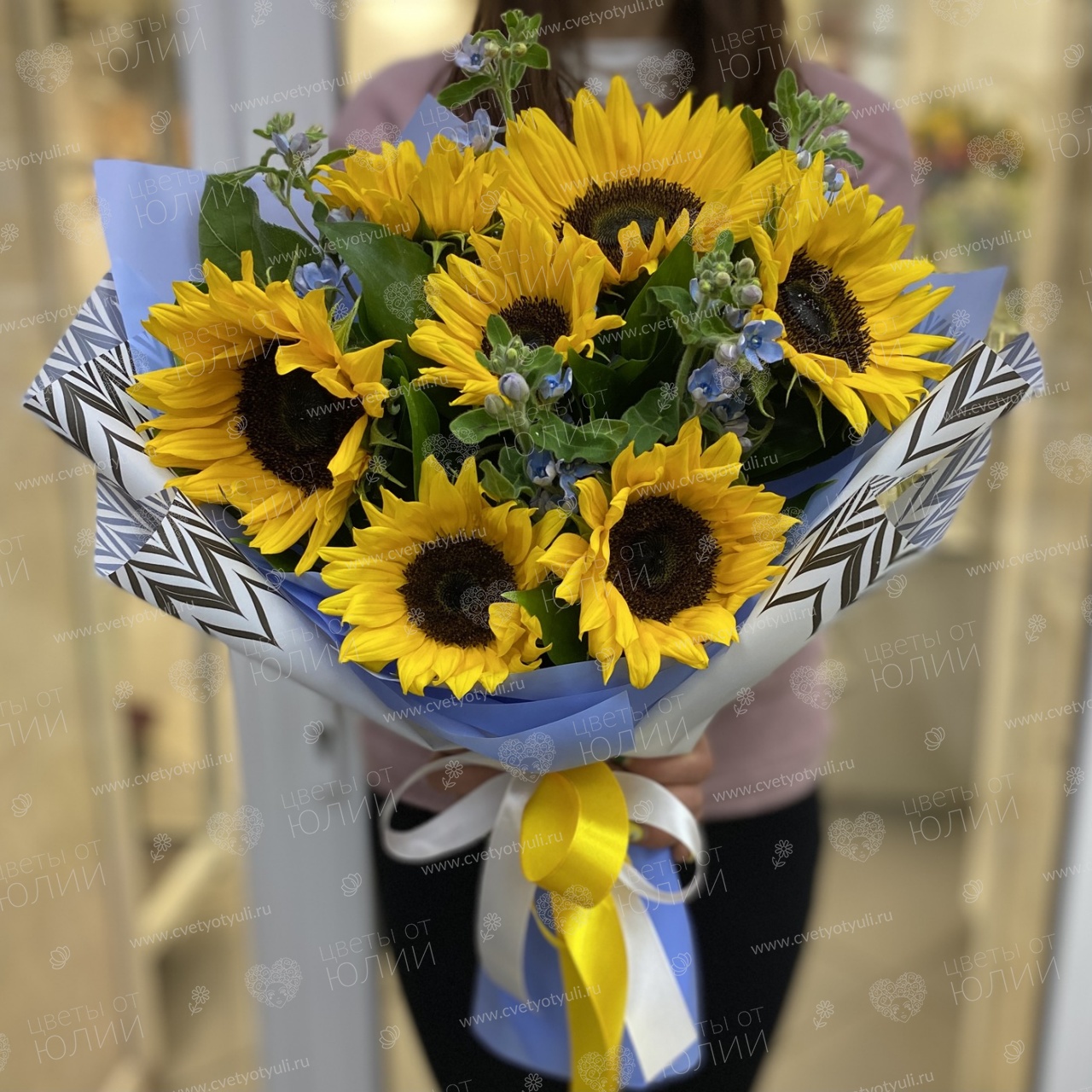 Гелиантус - 7 шт, оксипеталум - 5 шт, упаковка, лента.