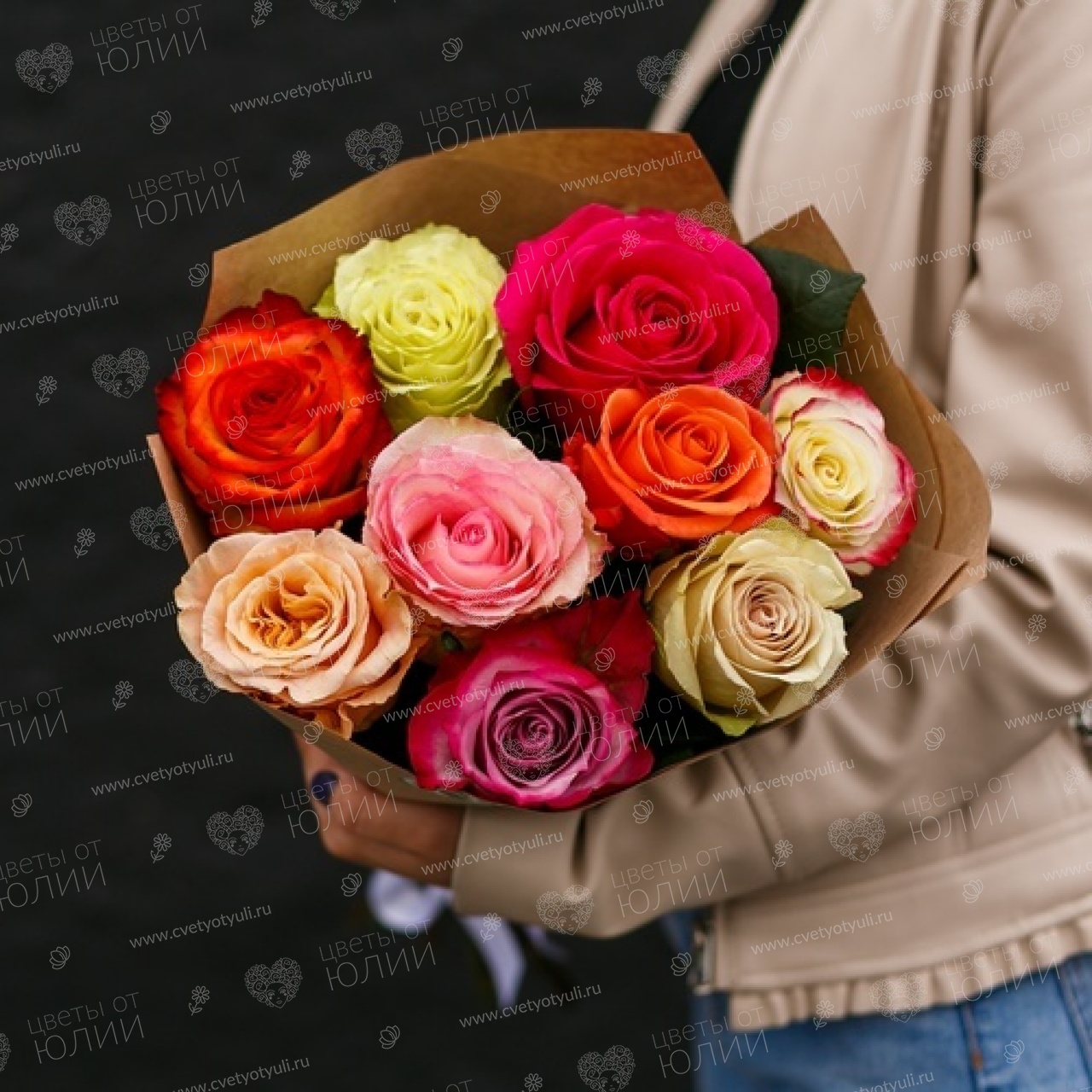 Букет из 9 роз ассорти 50 см