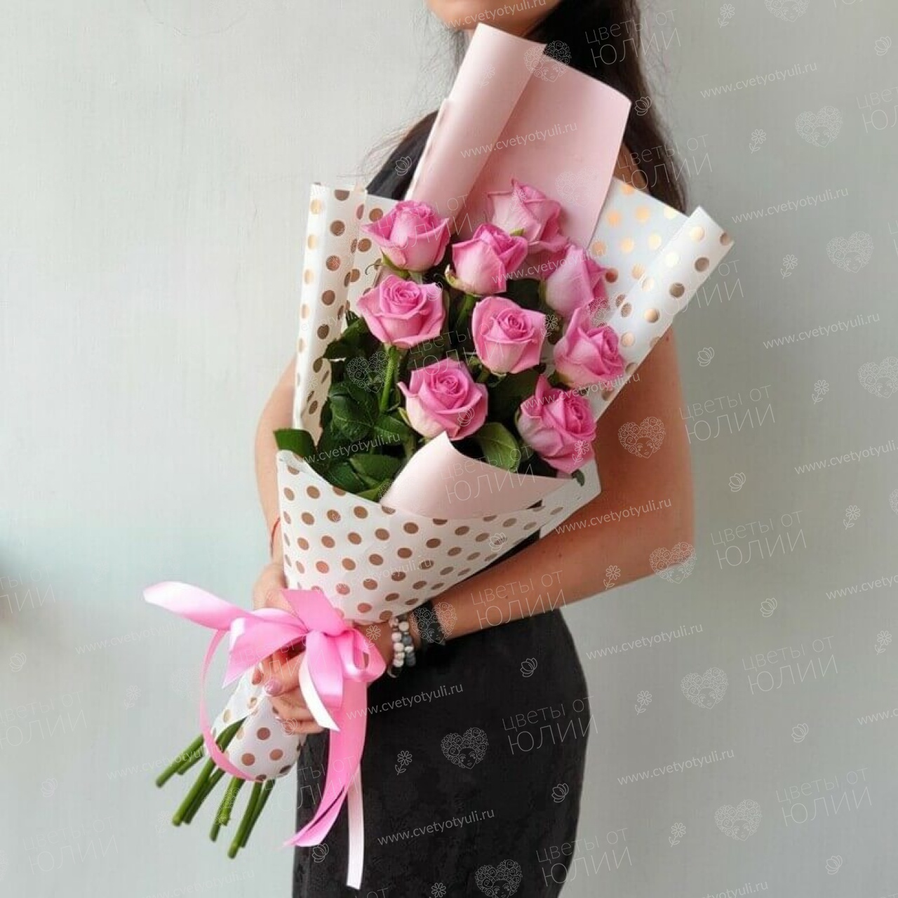 Букет из 9 розовых роз 50 см