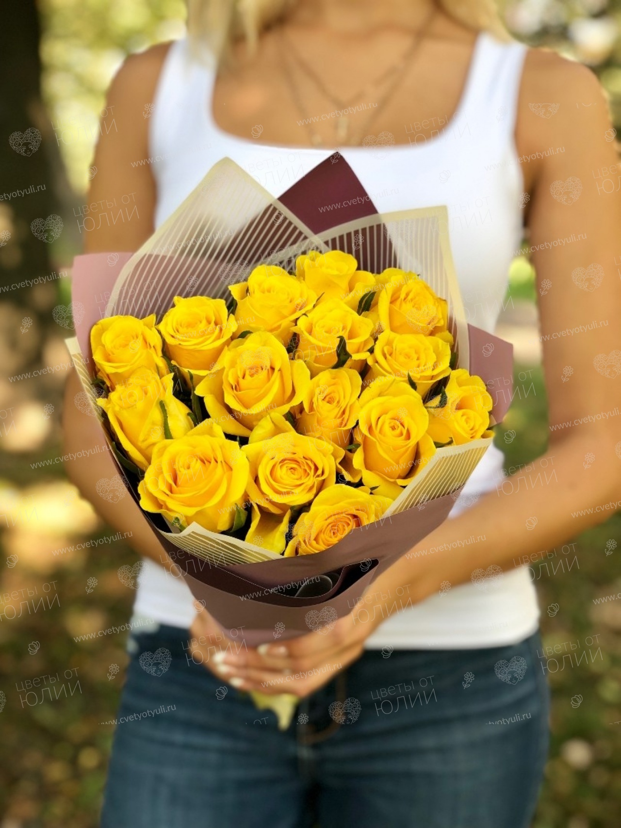 Букет из 15 желтых роз 50 см