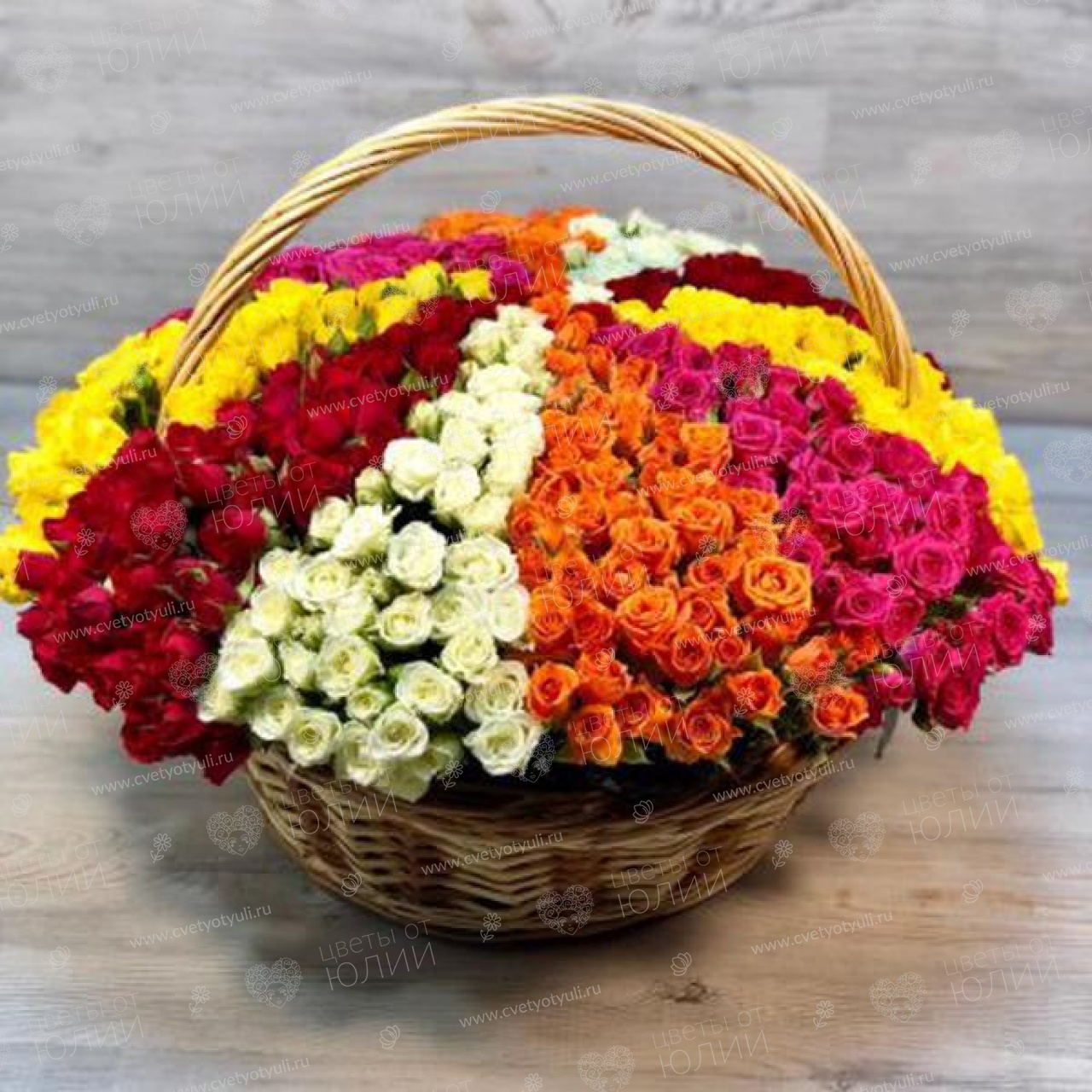 Корзина из 101 кустовой розы Ассорти красок
