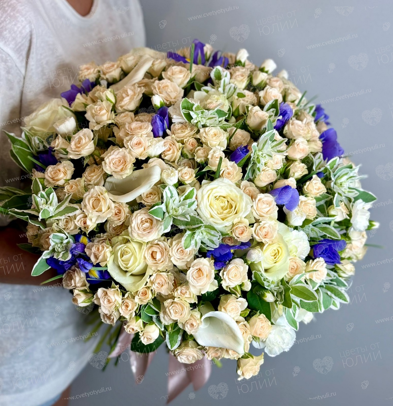 *Возможны замены некоторых сортов цветов (из-за ограничения сезонности, поставки) на похожие сорта с сохранением визуального эффекта и настроения, объёма, палитры и стоимости продукта, с обязательным согласованием замен с заказчиком.