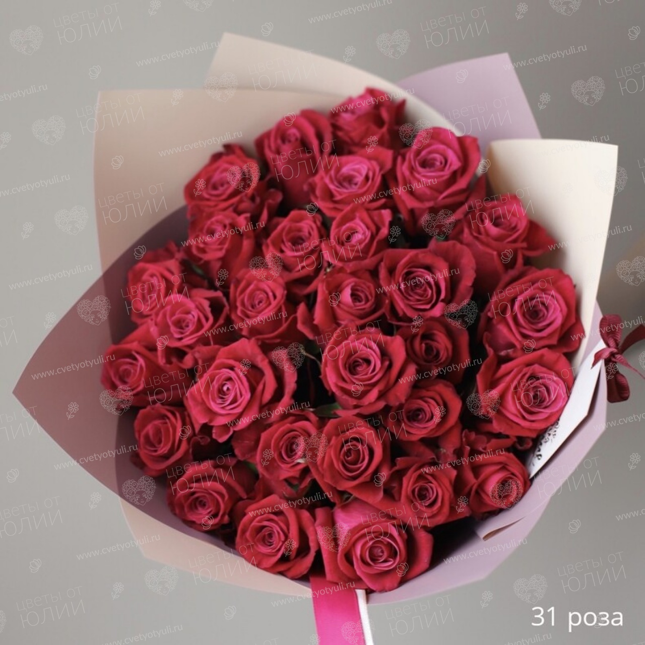 Букет 31 малиновая роза 50 см