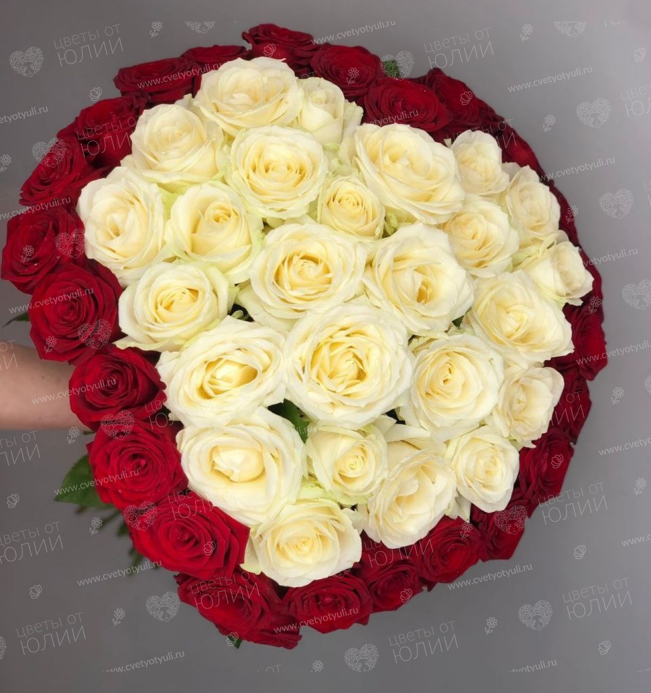 Букет из 51 красно-белой розы 50 см