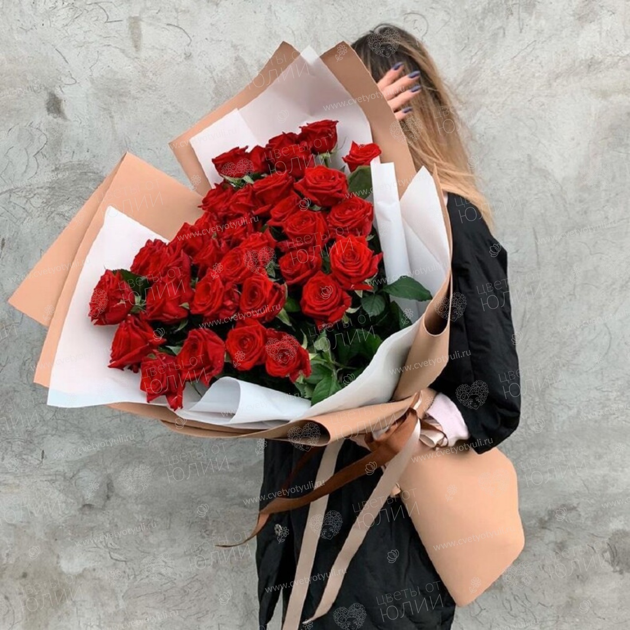 Роза 50-60см - 31 шт, упаковка, лента.