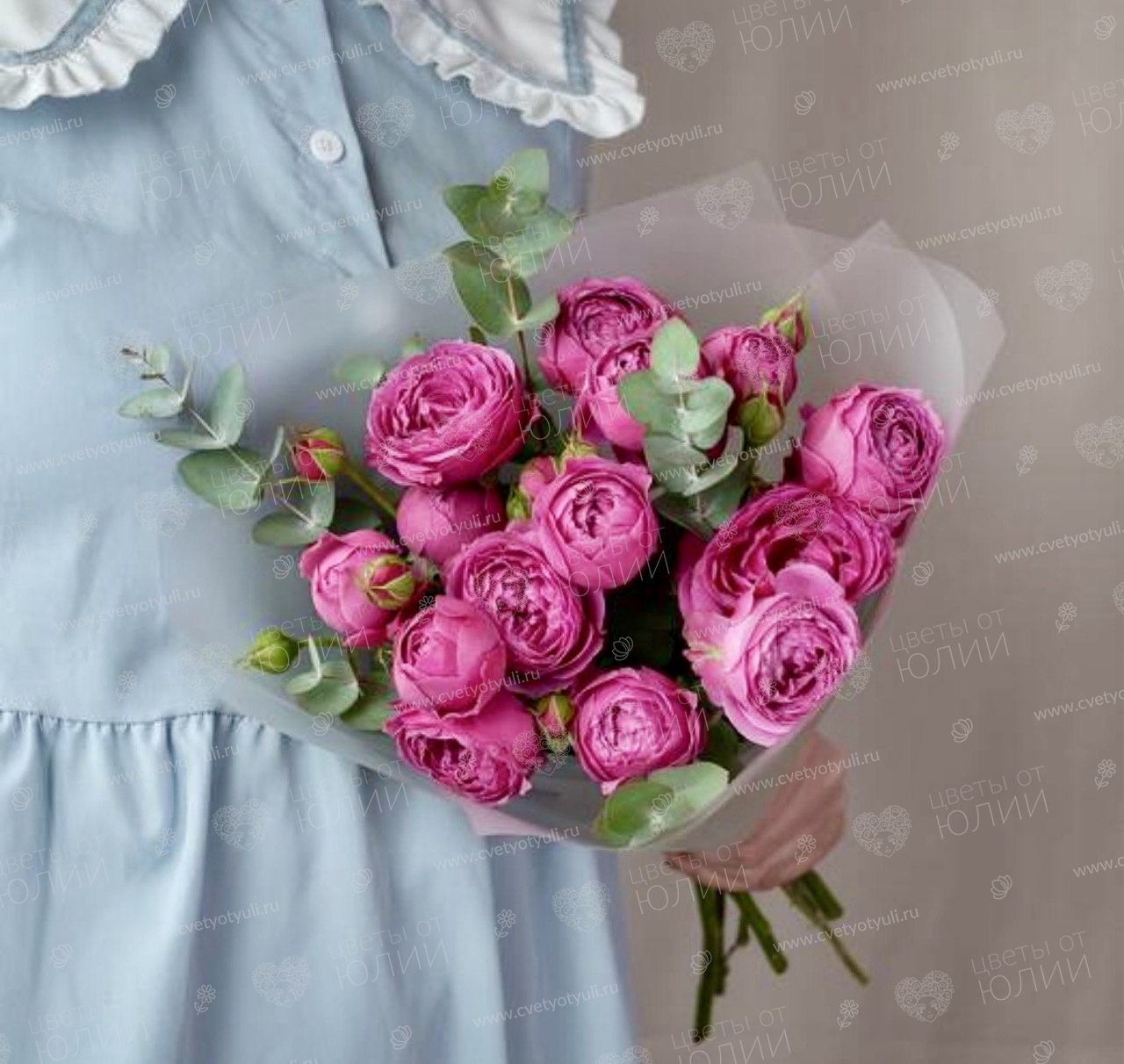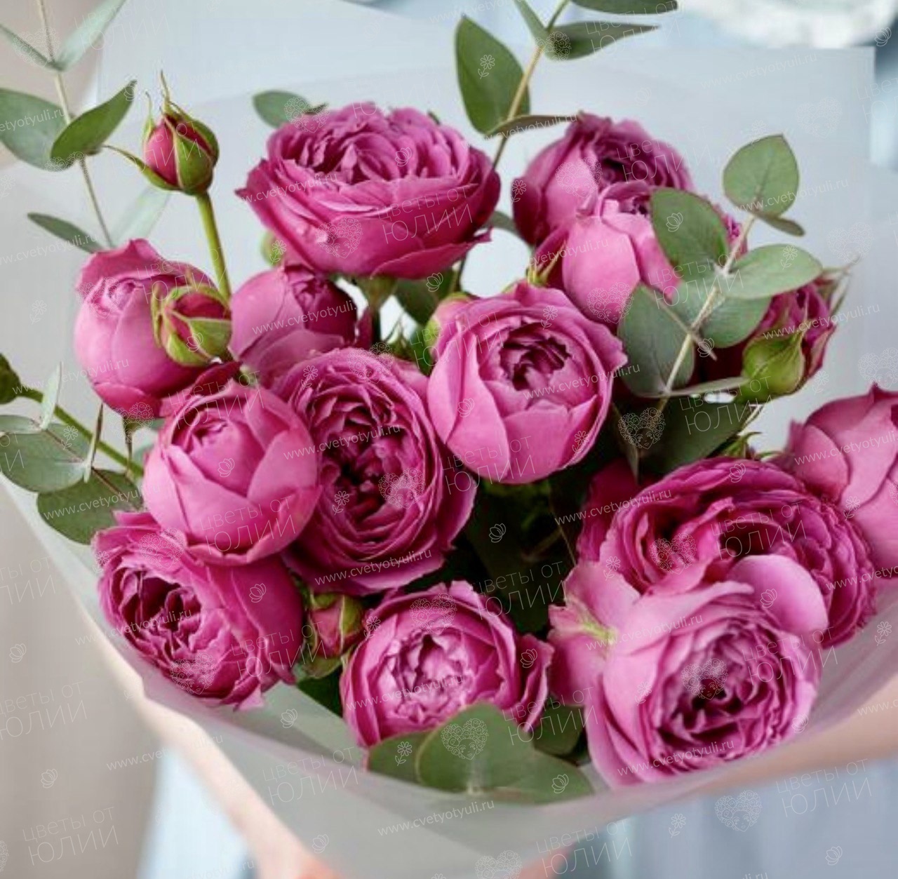 Букет из 5 кустовых роз и эвкалипта