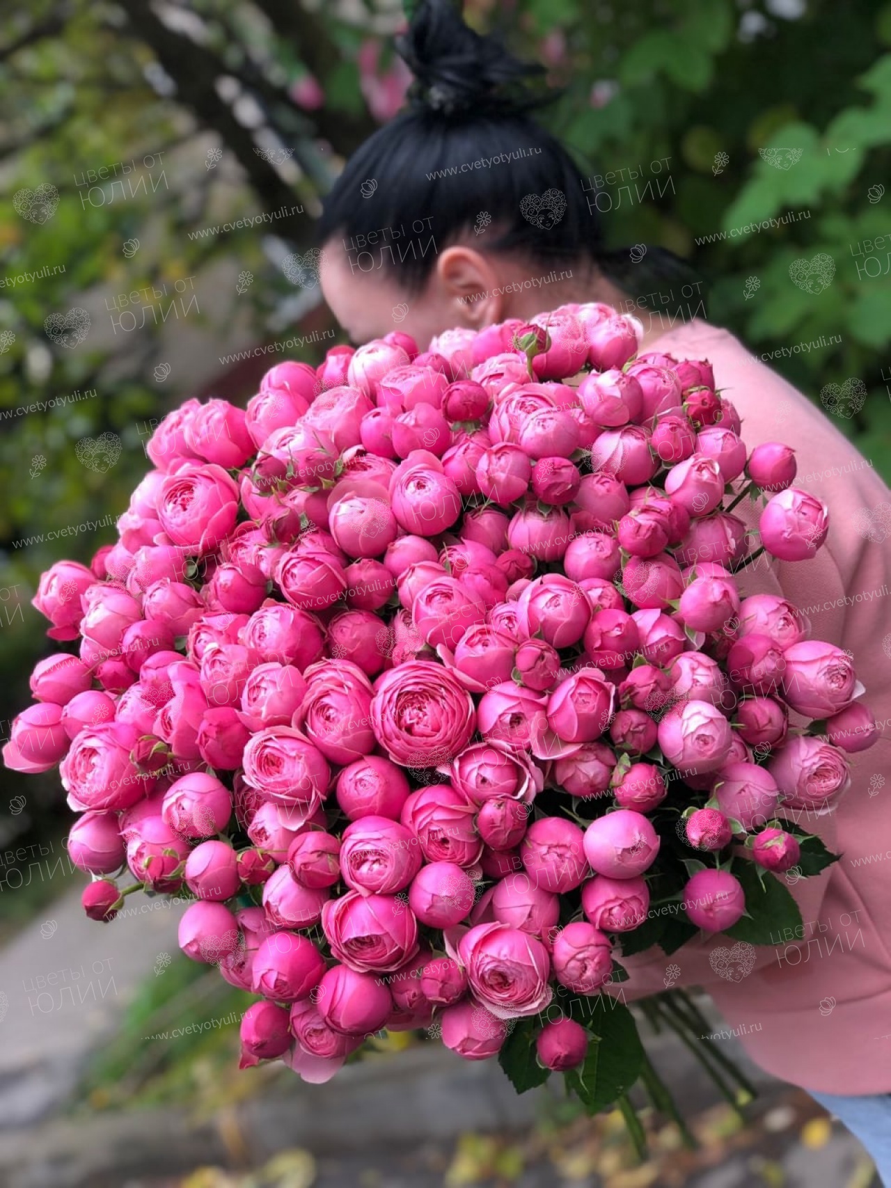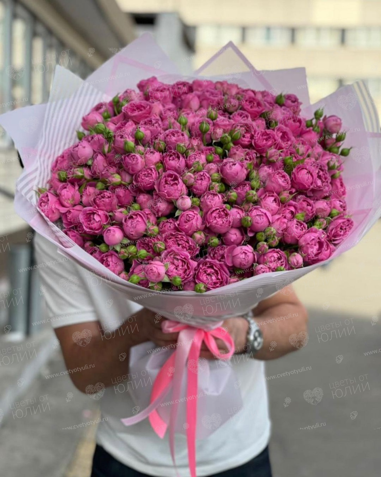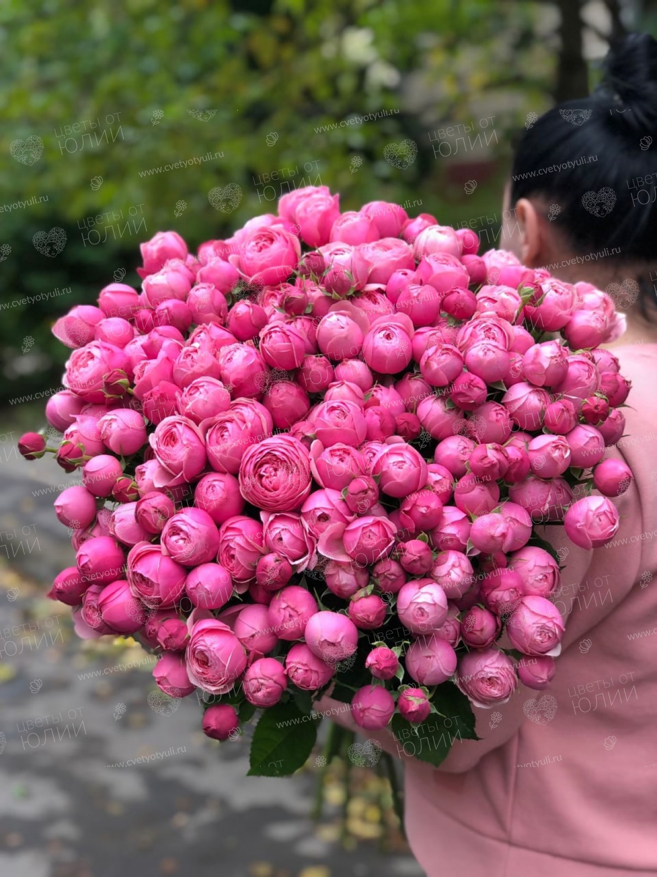 Роза кустовая пионовидная - 51 шт 60-70см, упаковка, лента.