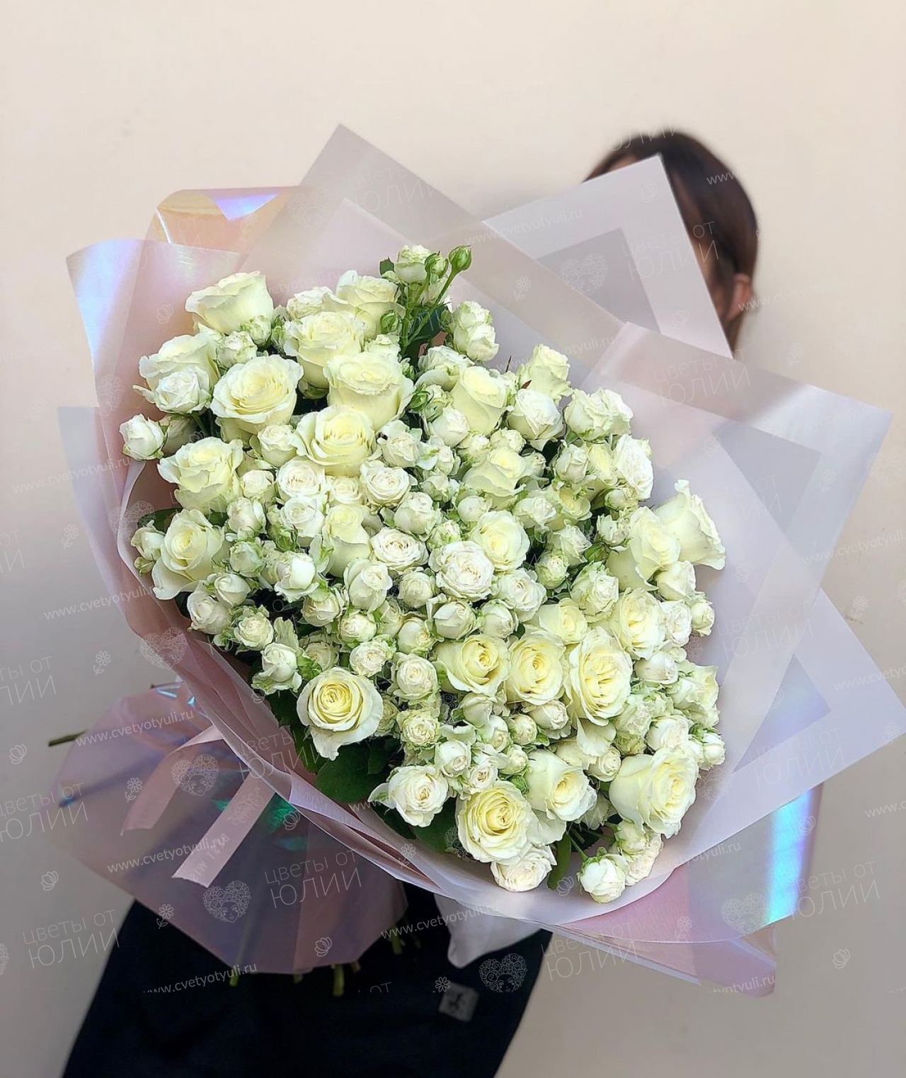 Роза 50 см - 25 шт, роза кустовая 30 шт, упаковка, лента.