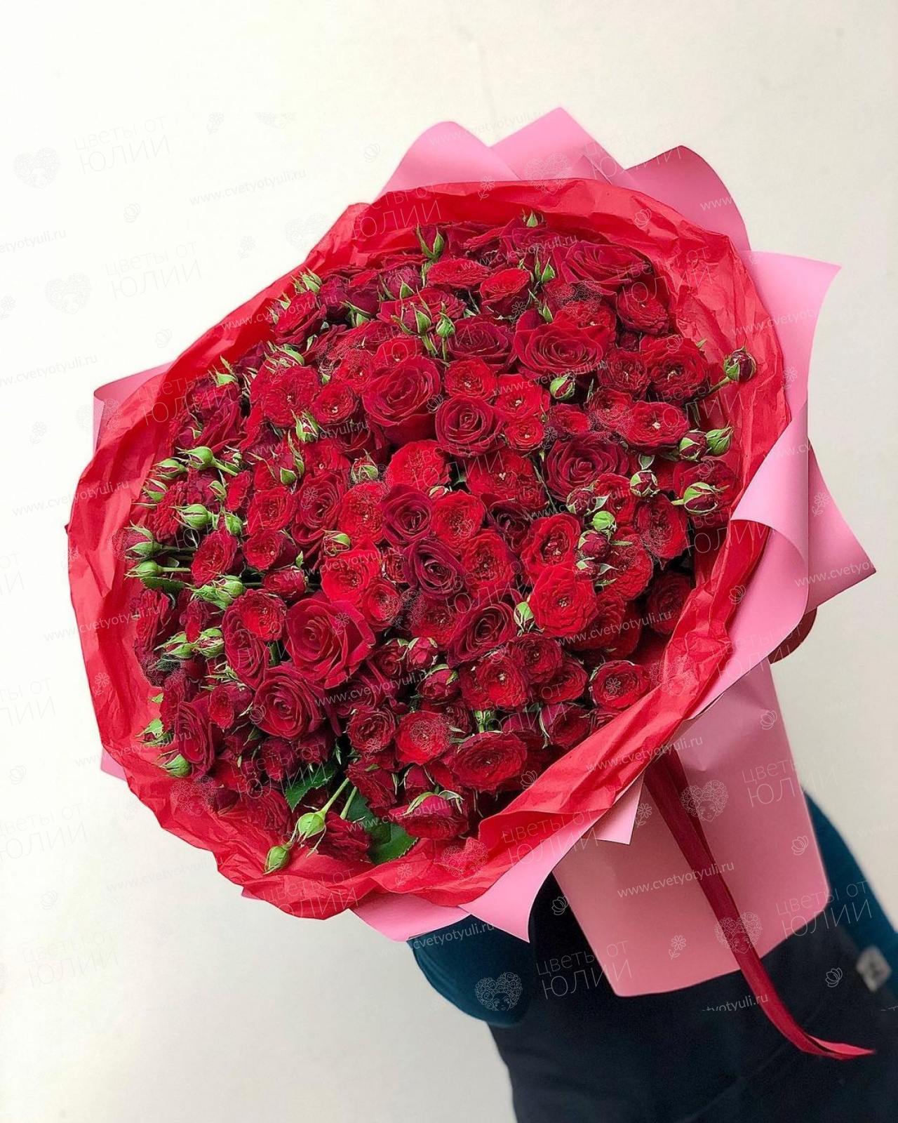 Роза кустовая 50см  - 51 шт, упаковка, лента.
