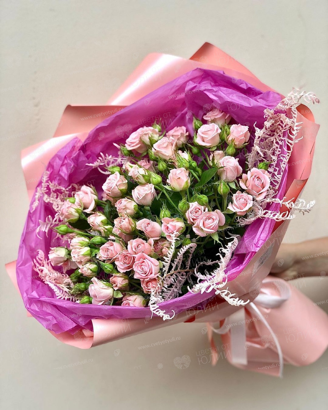 *Возможны замены некоторых сортов цветов (из-за ограничения сезонности, поставки) на похожие сорта с сохранением визуального эффекта и настроения, объёма, палитры и стоимости продукта, с обязательным согласованием замен с заказчиком.