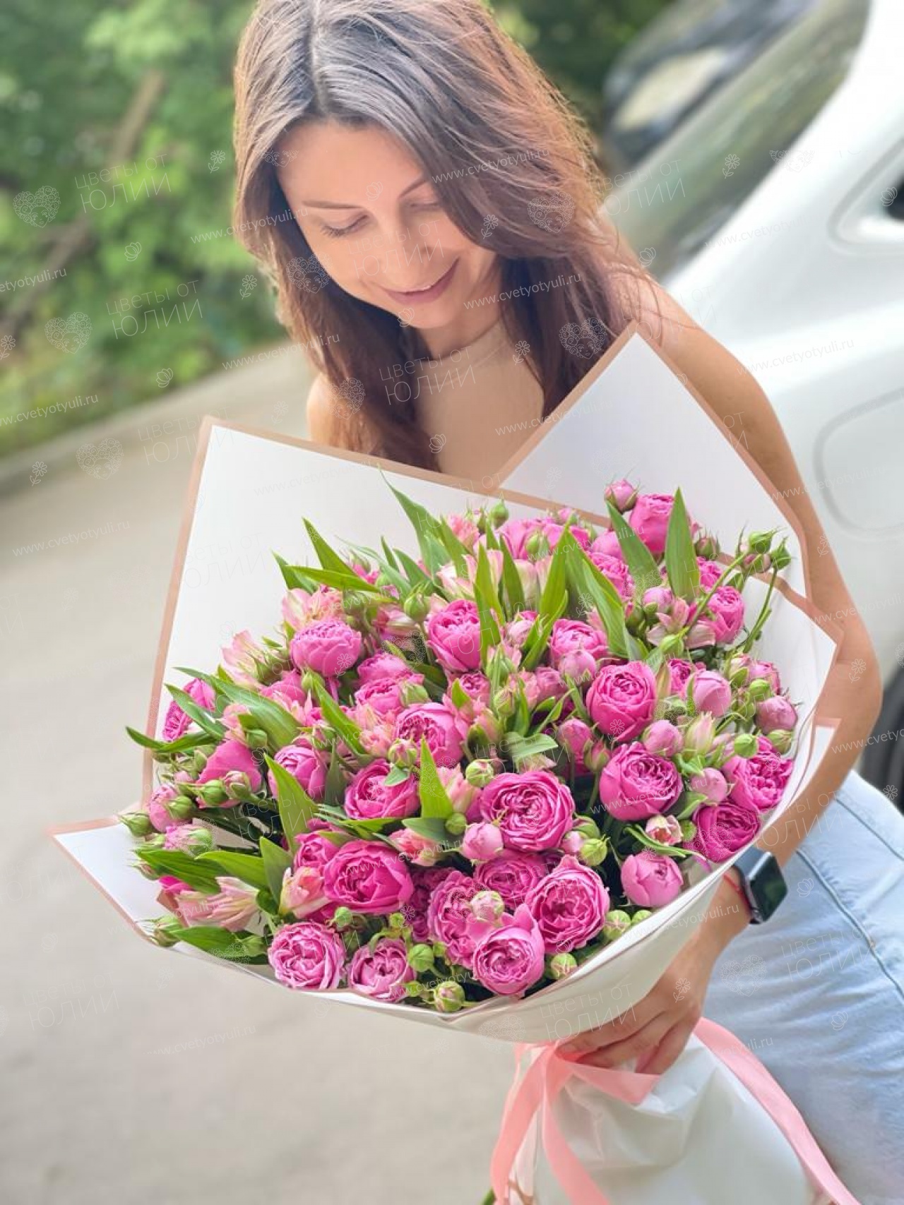 • Состав: Альстромерии, Пионы, Розы, Упаковка, Зелень