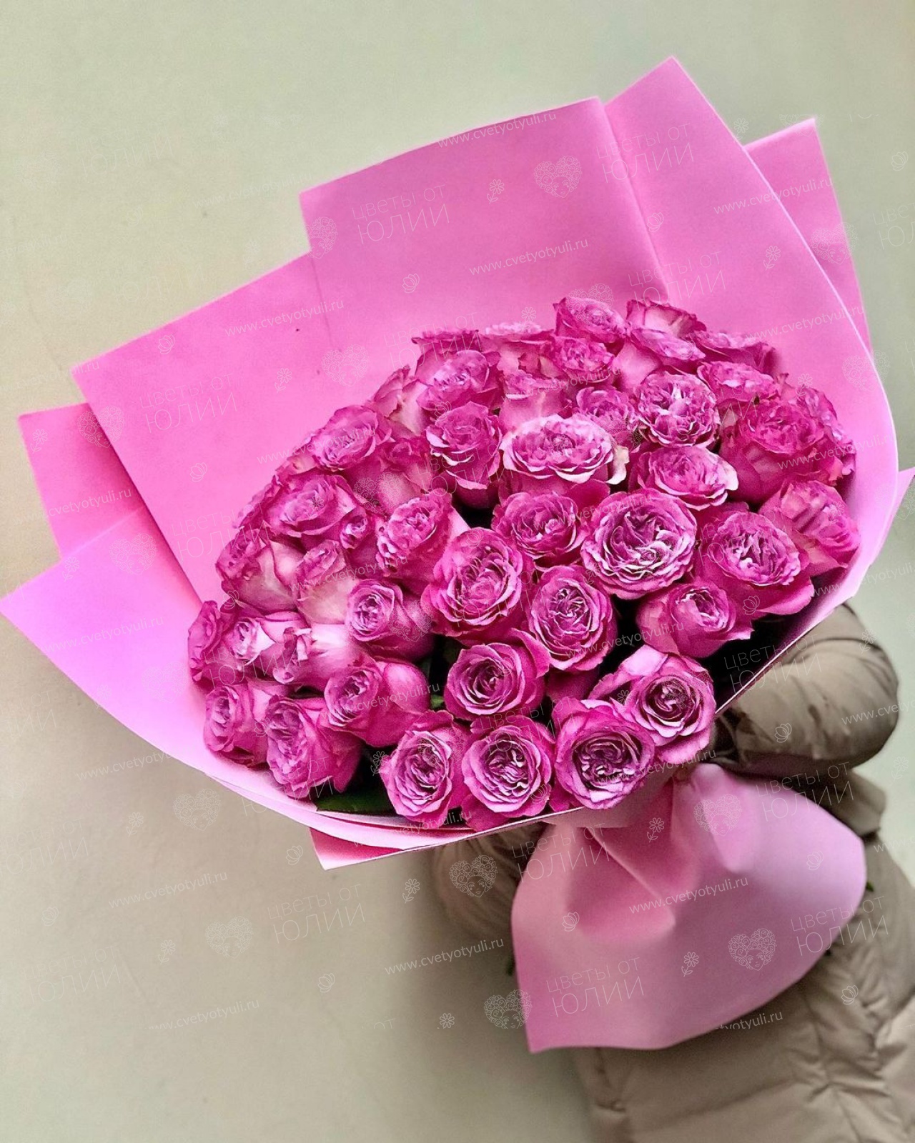 Роза 50-60 см - 51 шт, упаковка, лента.