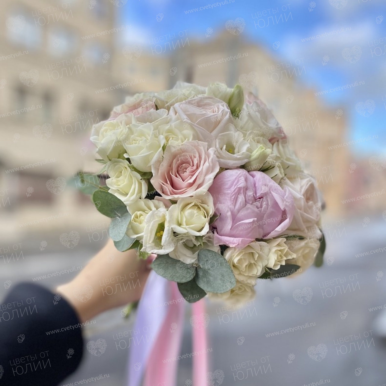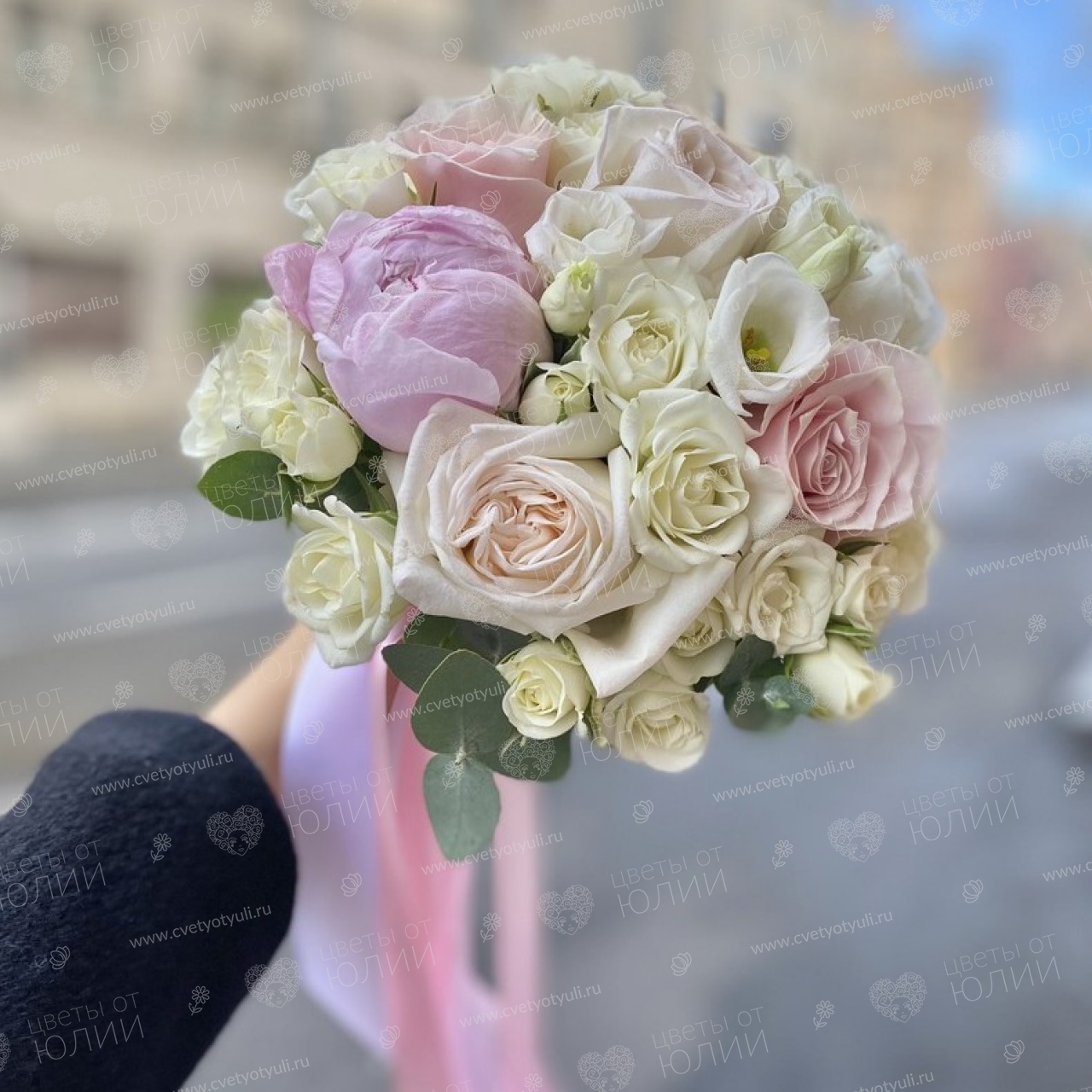 • Состав: Лизиантус, Пионы, Розы