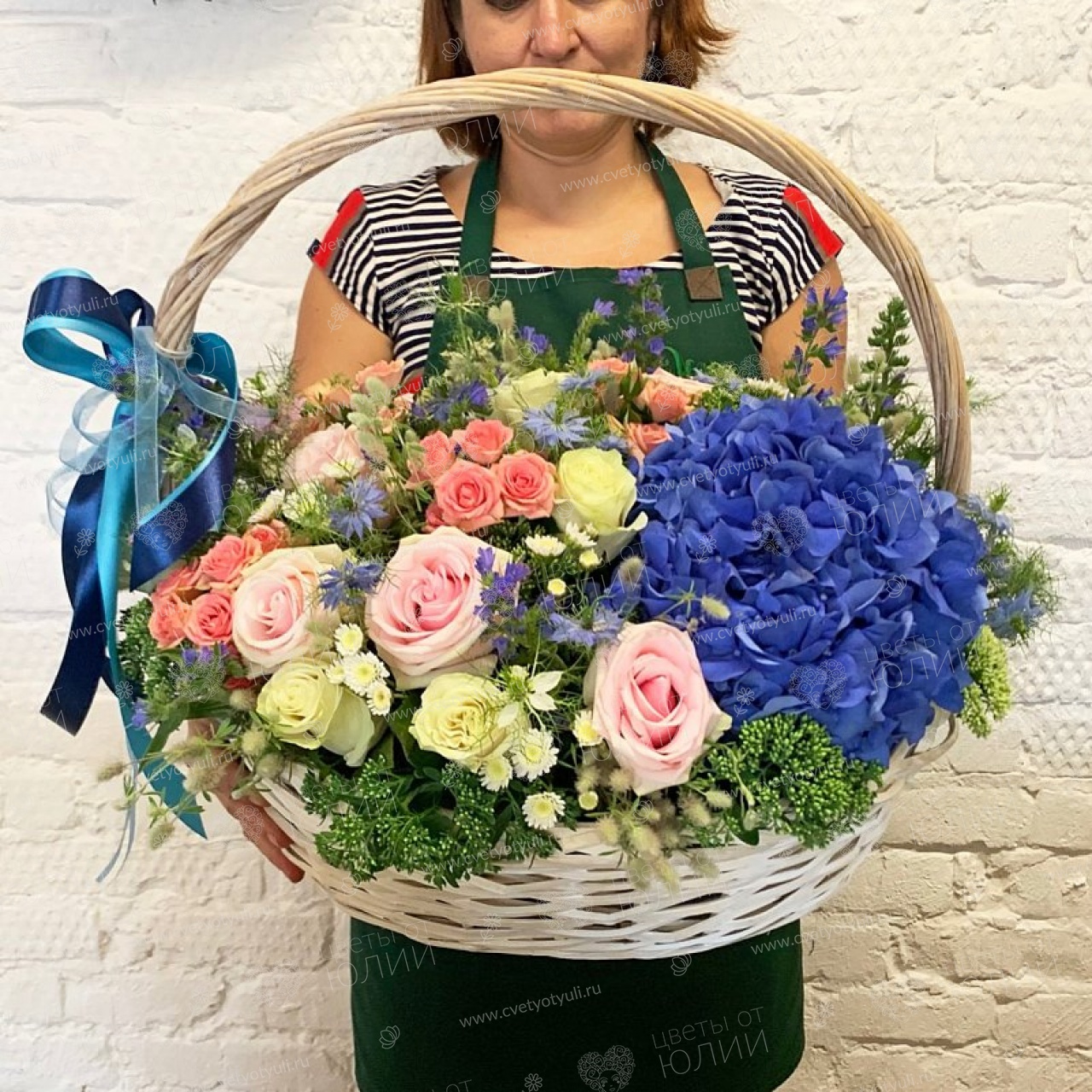 Корзина гортензий и роз Джумилия