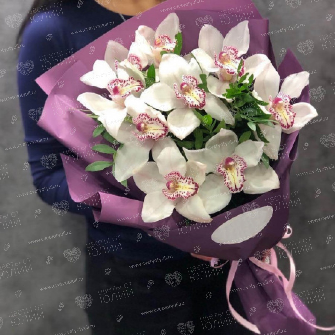 Орхидея - 9 шт, писташ - 3 шт, упаковка, лента.