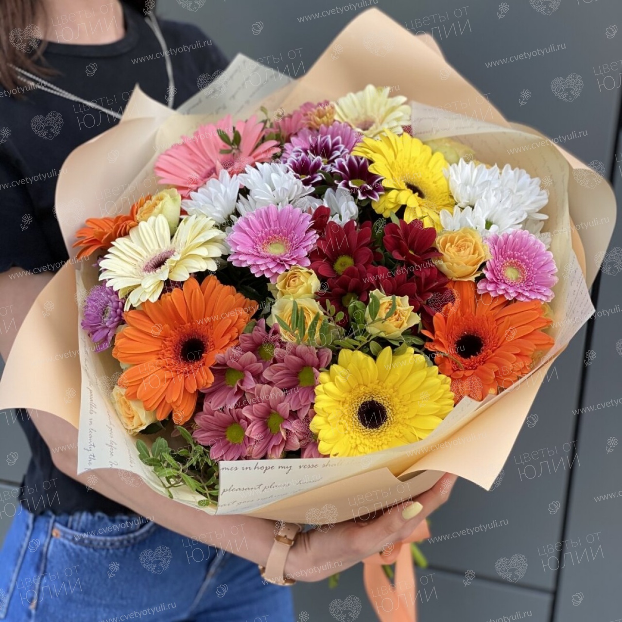 *Возможны замены некоторых сортов цветов (из-за ограничения сезонности, поставки) на похожие сорта с сохранением визуального эффекта и настроения, объёма, палитры и стоимости продукта, с обязательным согласованием замен с заказчиком.