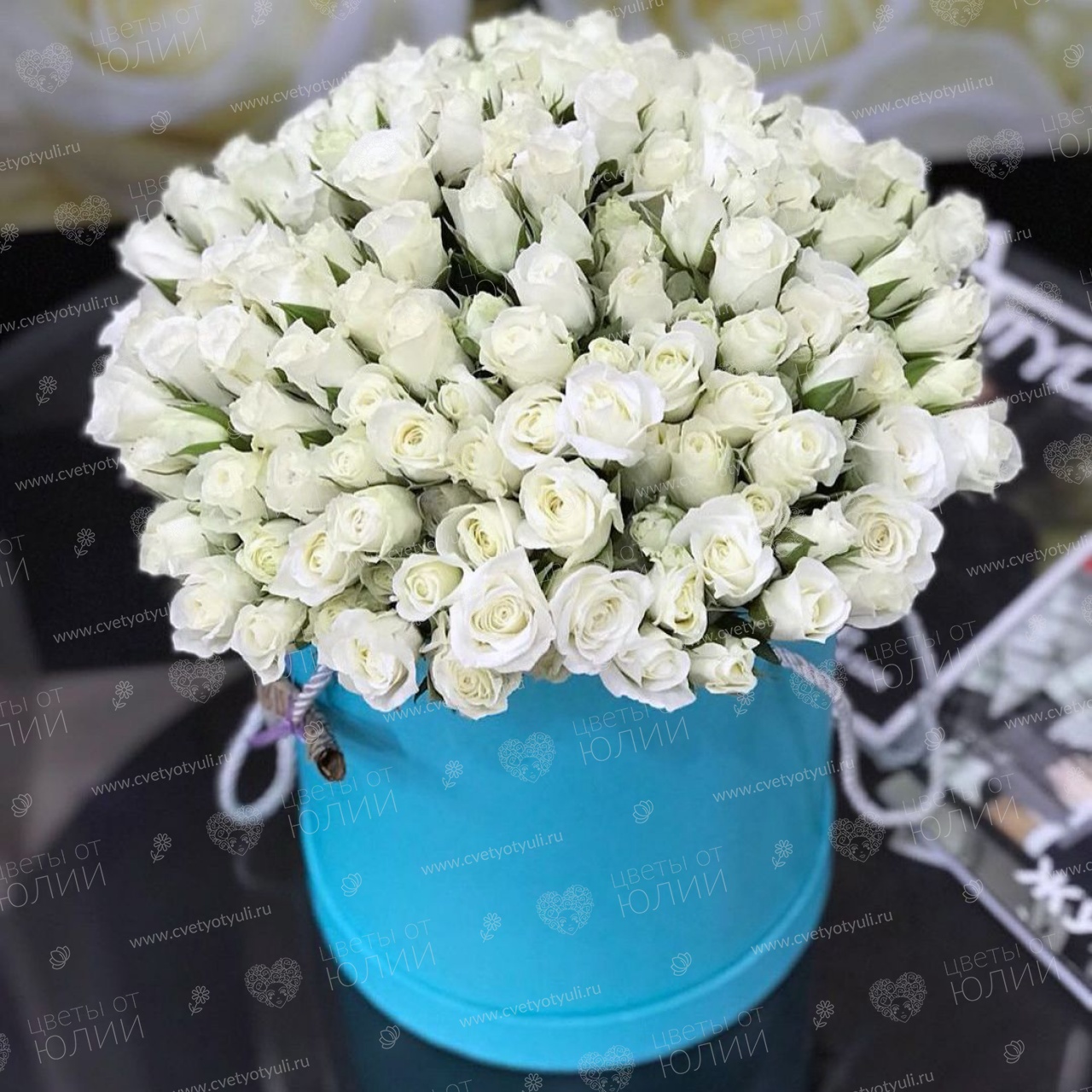 Роза кустовая - 21 шт, шляпная коробка.