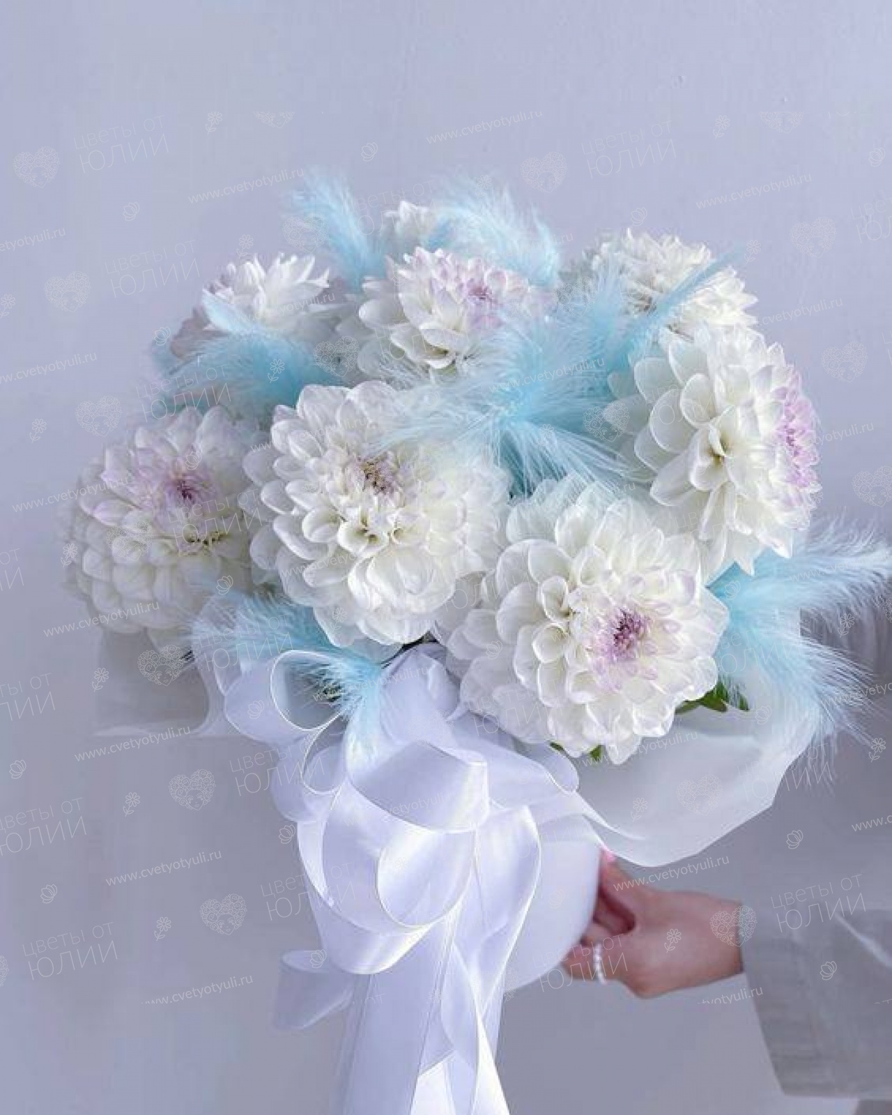 Коробка с белыми георгинами