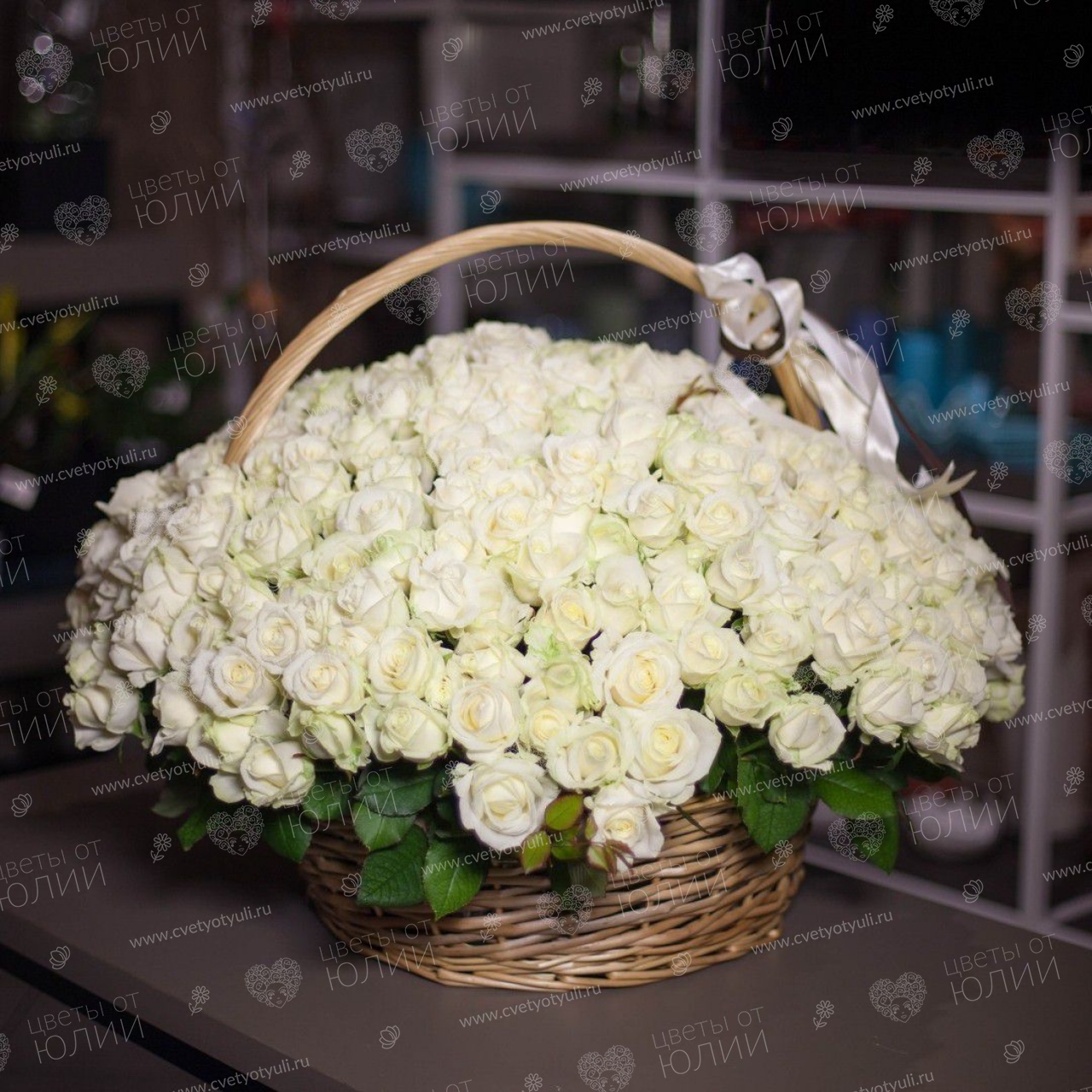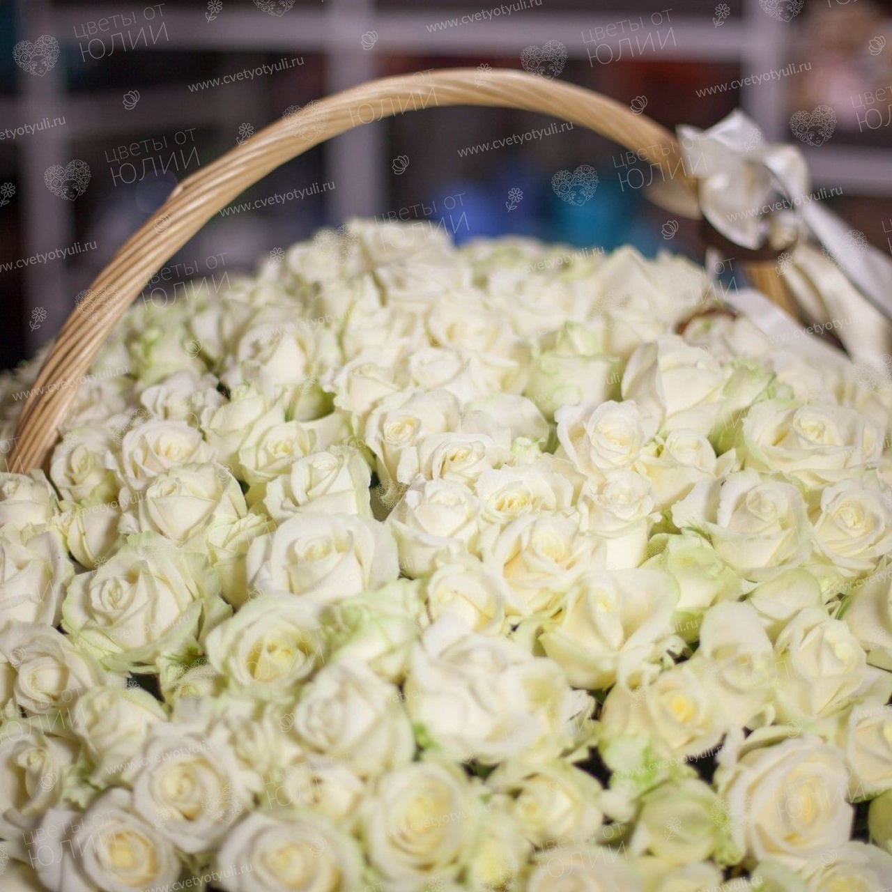 Корзина из 101 белой розы