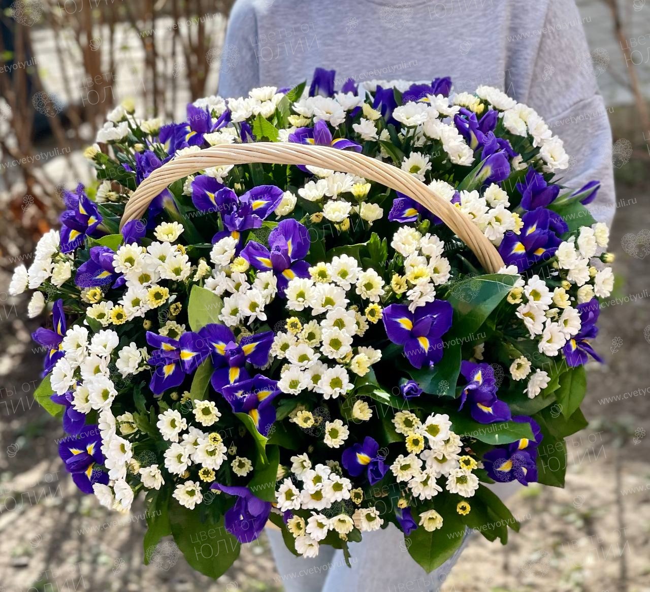 Корзина из ирисов и ромашек Аврелия