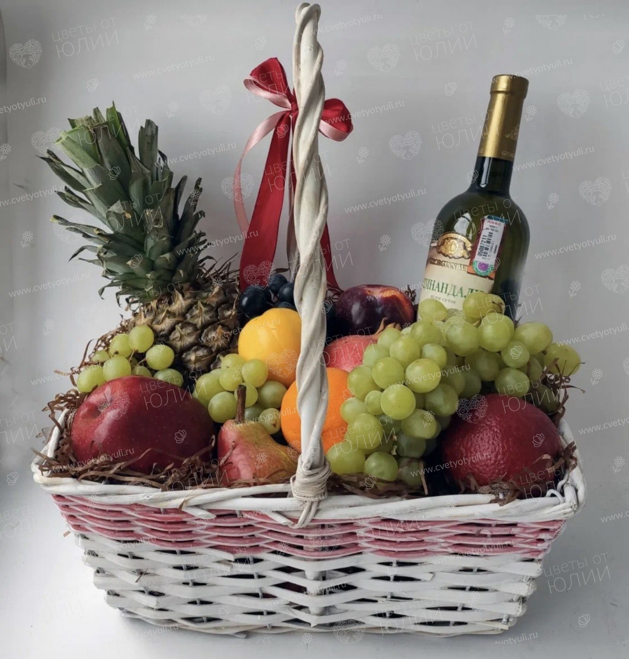 Корзина с фруктами будет отличным дополнением к шикарному букету цветов.