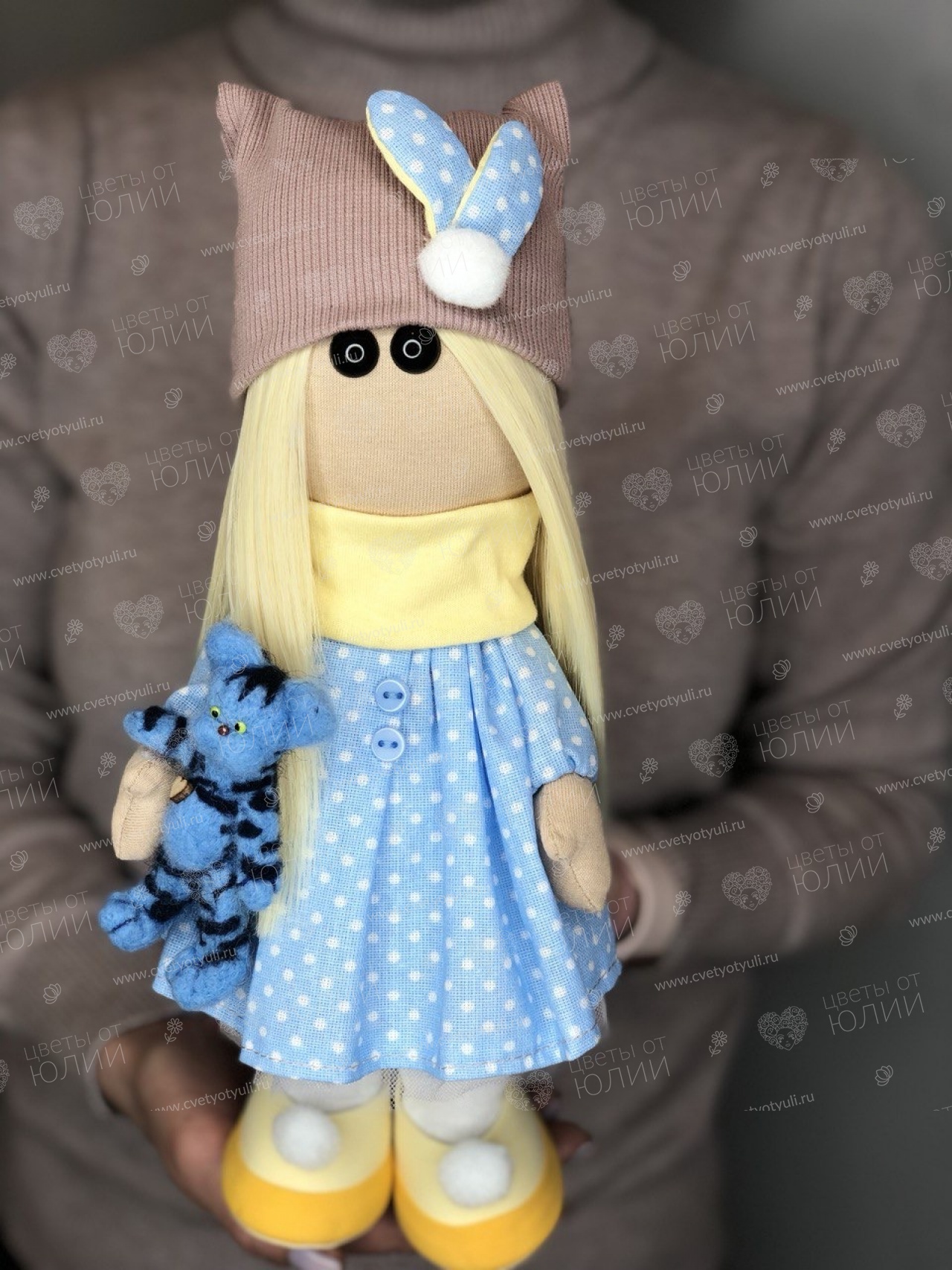Кукла-тильда ручной работы "Девочка с котом"