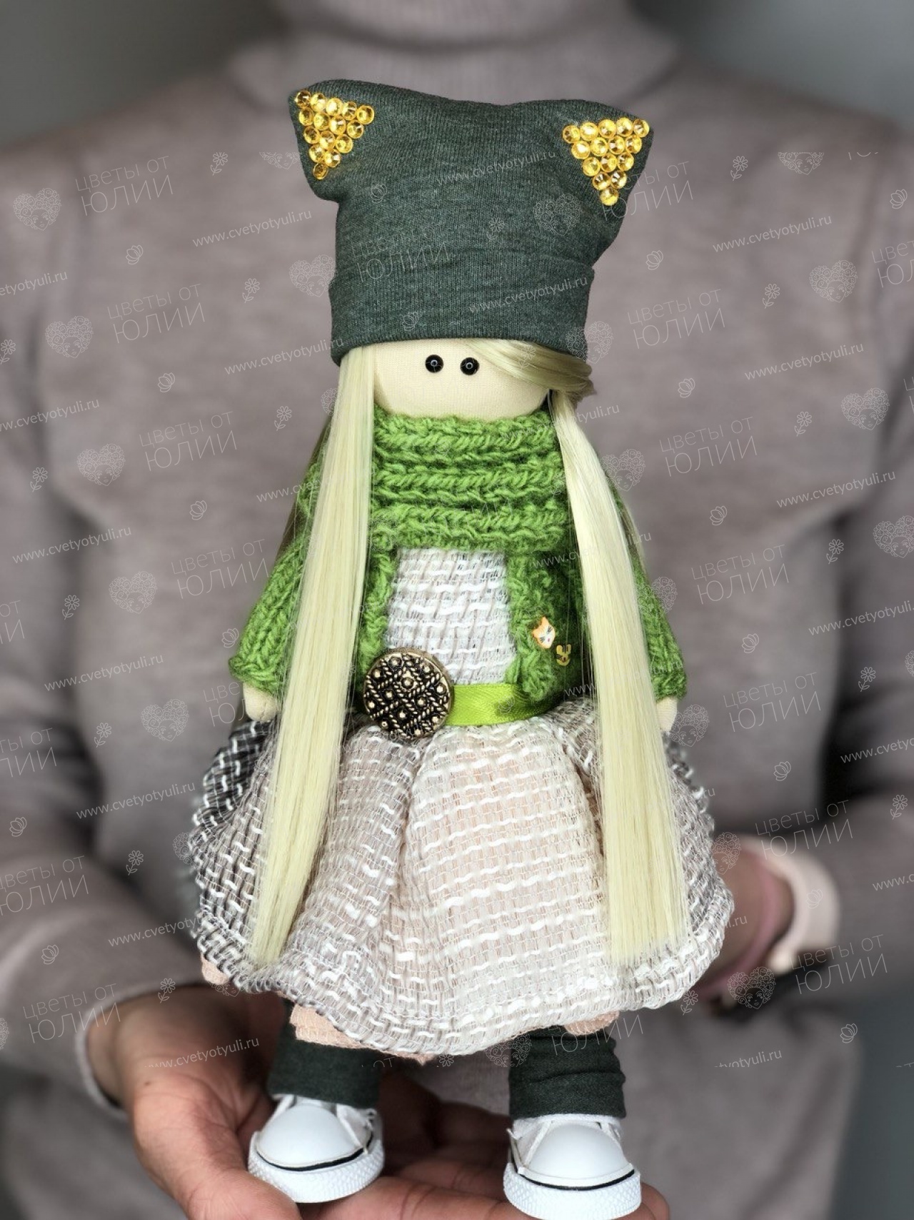 Кукла-тильда ручной работы "Девочка в зеленом шарфе"
