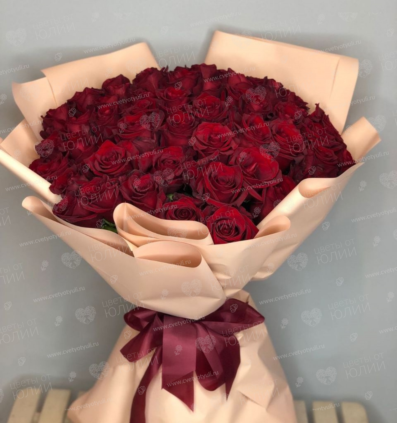 Роза 50 см - 35 шт, упаковка, лента.