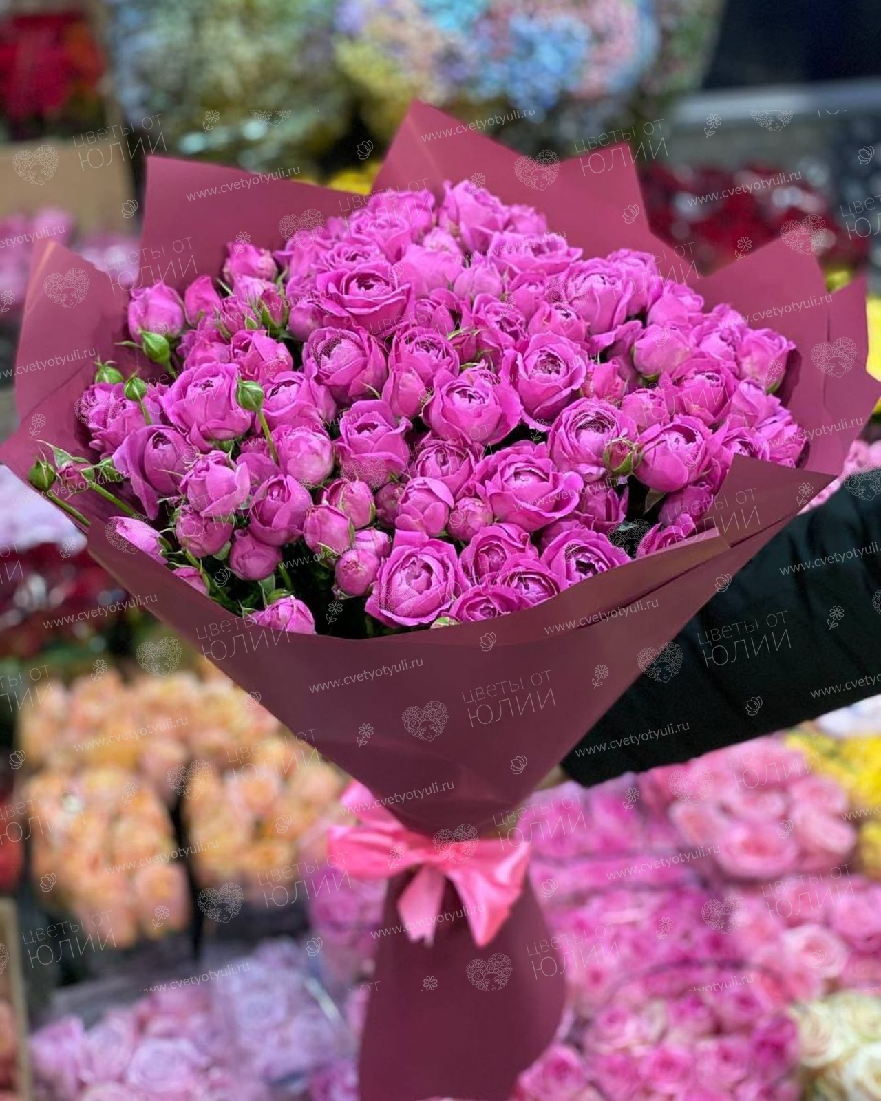 Сборка букета происходит при предоплате 20-30%. Без предоплаты букет собирается при оплате в магазине при вас.