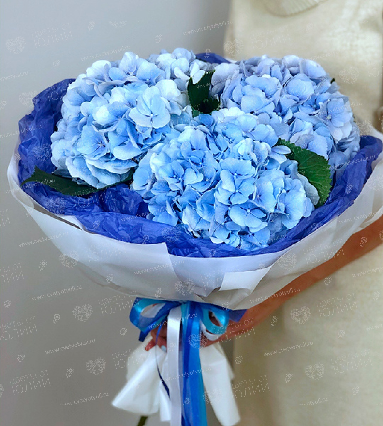 Букет из 3 голубых гортензий