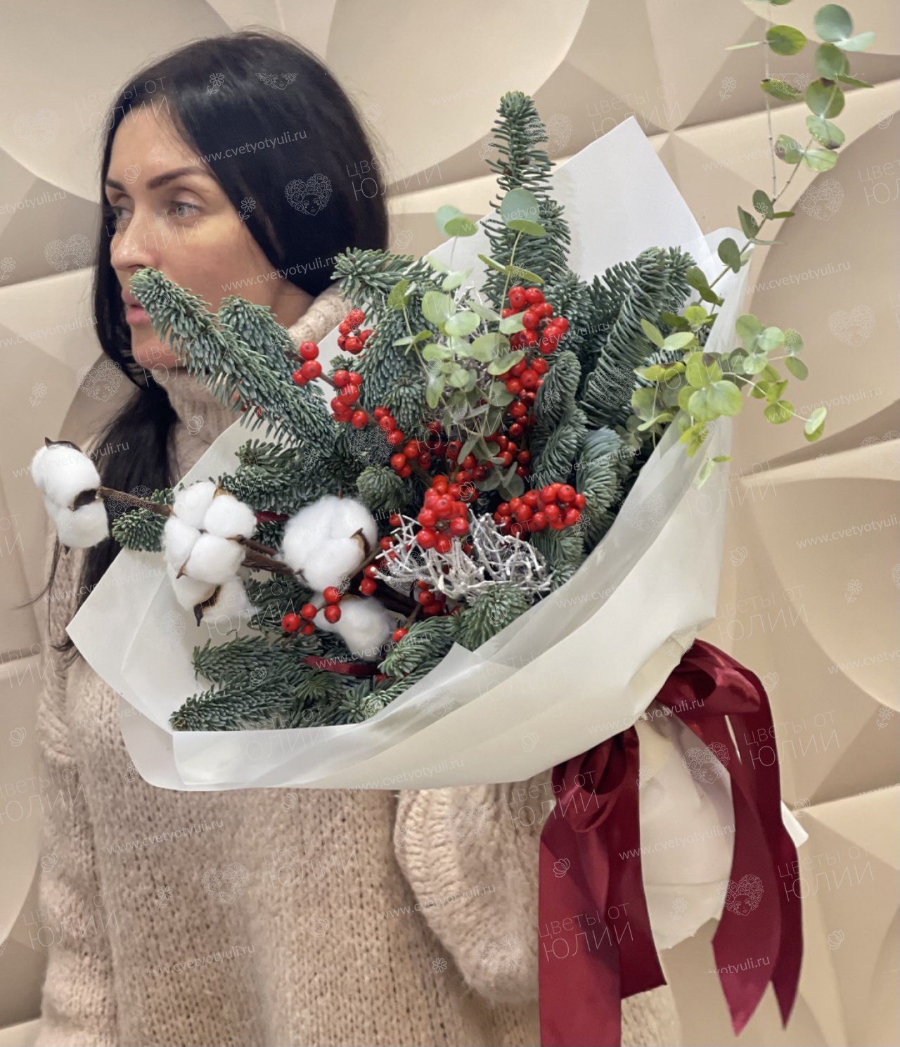 Новогодний Букет из Ёлки и Хлопка