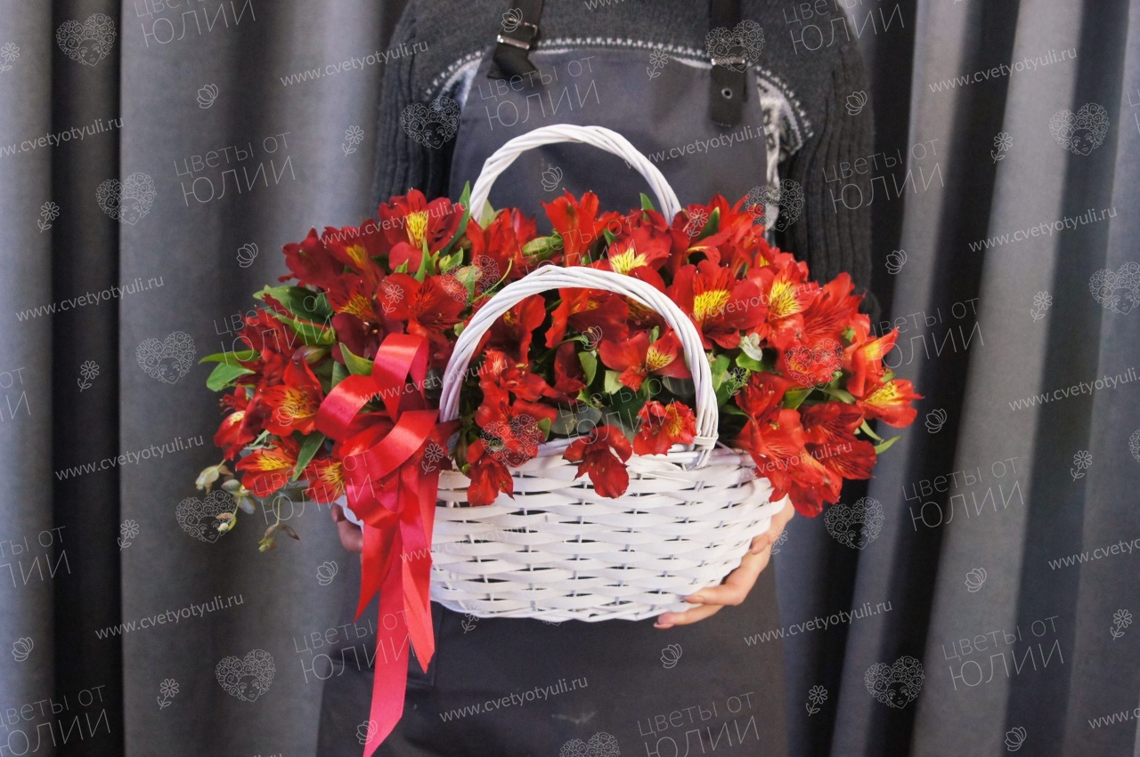 Альстромерия - 17 шт, эвкалипт, корзинка.