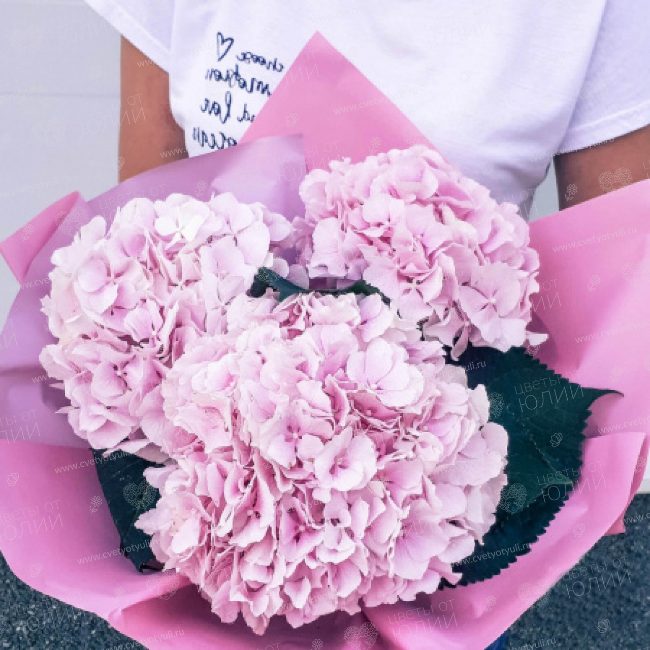 Букет из 3 розовых гортензий.