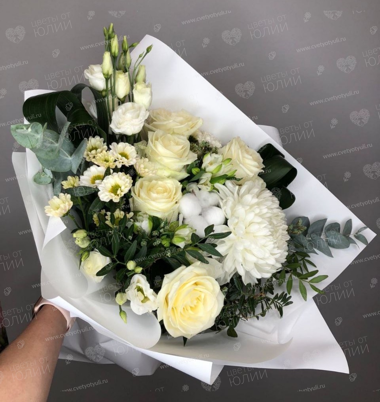 *Возможны замены некоторых сортов цветов (из-за ограничения сезонности, поставки) на похожие сорта с сохранением визуального эффекта и настроения, объёма, палитры и стоимости продукта, с обязательным согласованием замен с заказчиком.