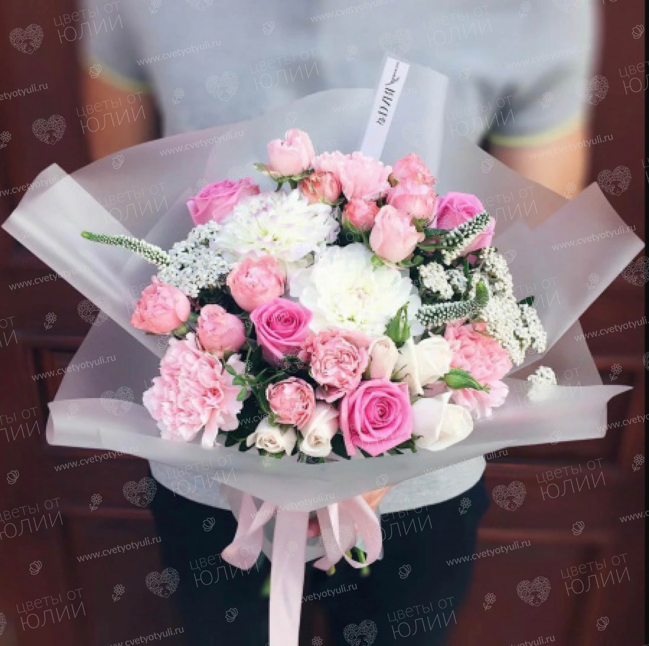 *Возможны замены некоторых сортов цветов (из-за ограничения сезонности, поставки) на похожие сорта с сохранением визуального эффекта и настроения, объёма, палитры и стоимости продукта, с обязательным согласованием замен с заказчиком.