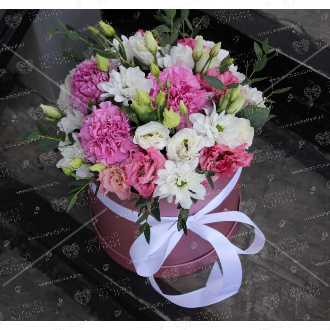 Коробка гвоздик и эустом Вандерленд