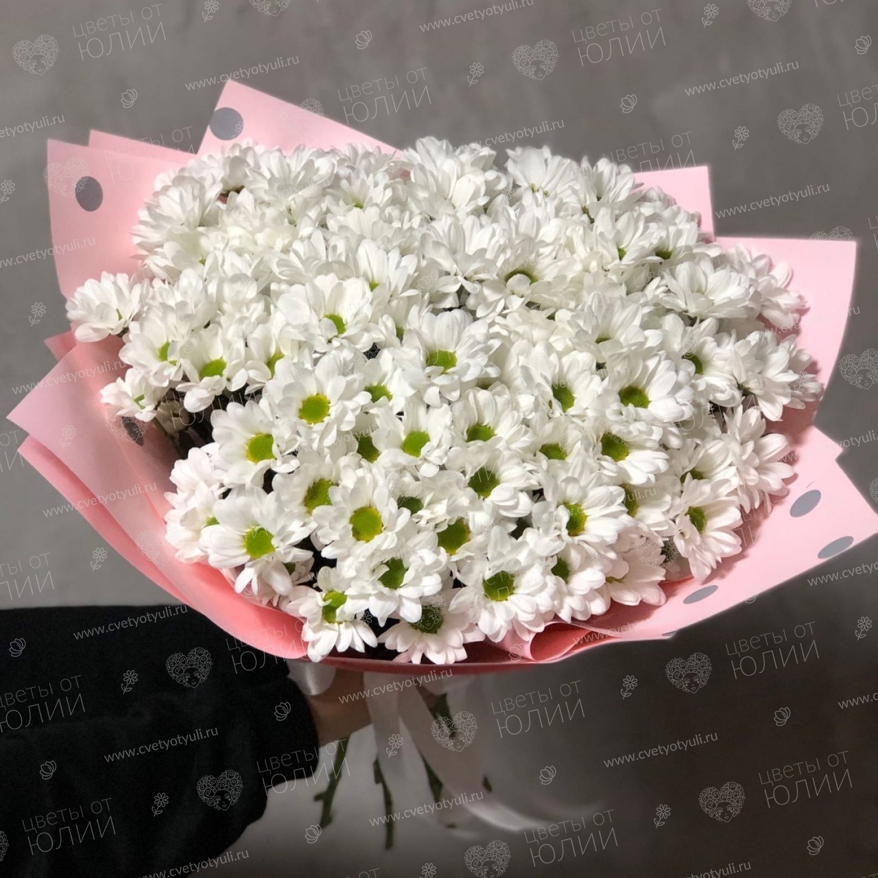 Хризантема кустовая - 9 шт, упаковка, лента.