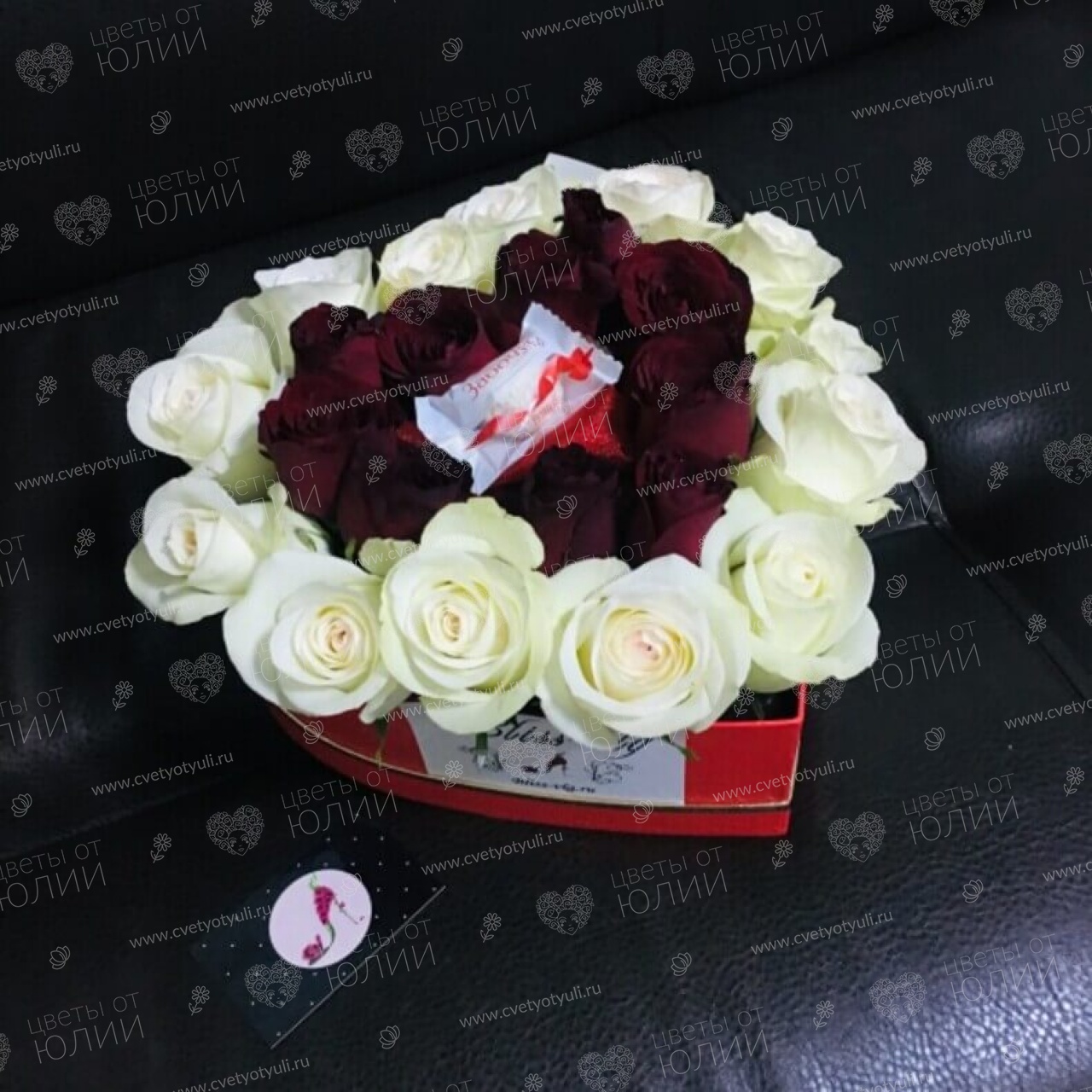 Роза 50 см - 23 шт, Raffaello - 1 шт, коробка.